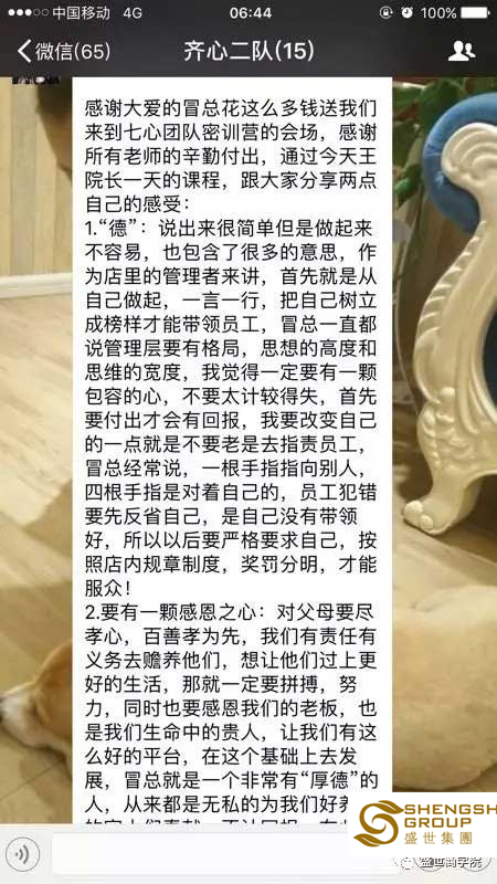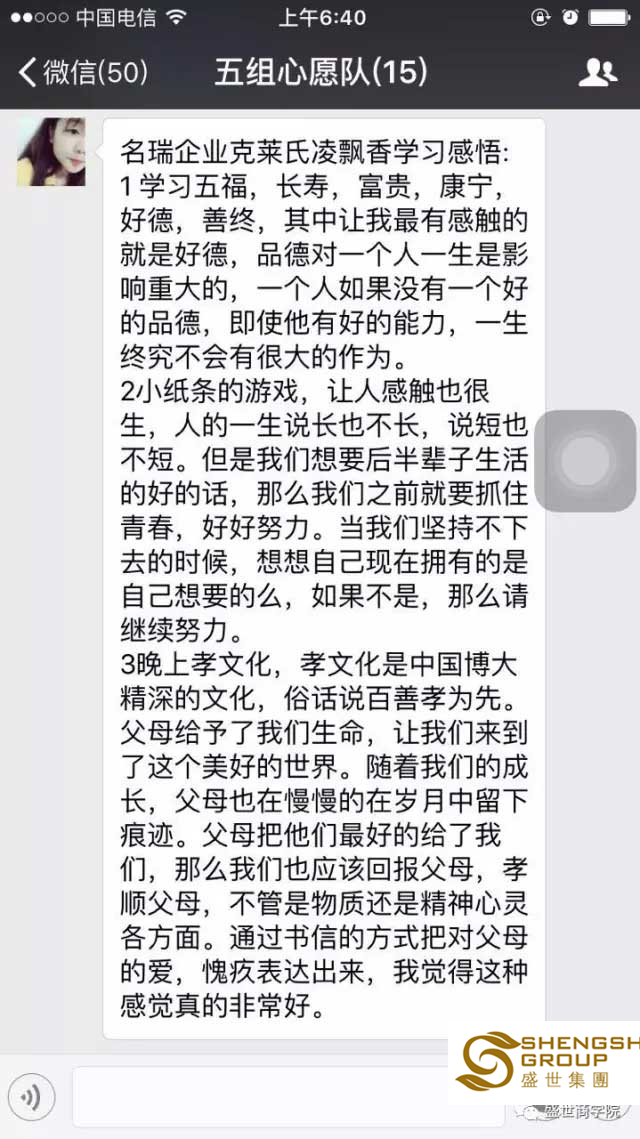 回歸初心,回歸責(zé)任【七心團(tuán)隊(duì)密訓(xùn)營(yíng)】頭頂感恩,心中有愛(ài),肩挑責(zé)任與擔(dān)當(dāng),腳踏忠誠(chéng)與孝道,全身充滿(mǎn)正能量。這是一次洗滌靈魂的生命旅程,這是一次畢生難忘的心境探索。在這里湖南的美業(yè)精英們正受著傳統(tǒng)國(guó)學(xué),孝文化的熏陶,感恩,孝順,責(zé)任,奉獻(xiàn)一直圍繞在他們心間。
