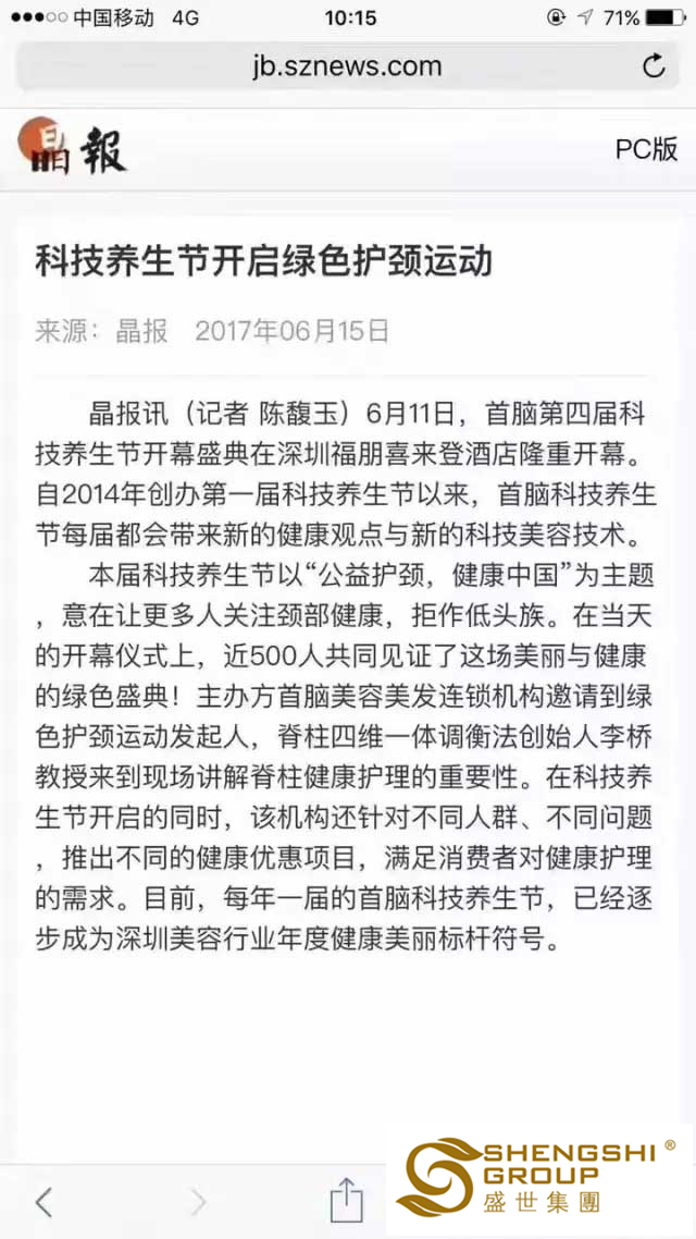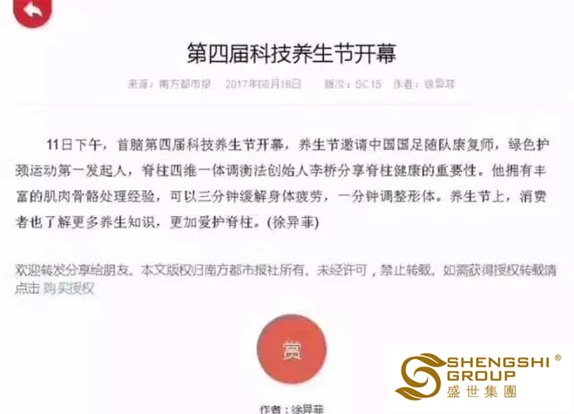 于盛世而言,這是社會(huì)各媒體對(duì)【綠色護(hù)頸運(yùn)動(dòng)】傳播健康與愛的極大支持與助力,同時(shí),這也是一份來自社會(huì)對(duì)盛世企業(yè)的十足認(rèn)可。