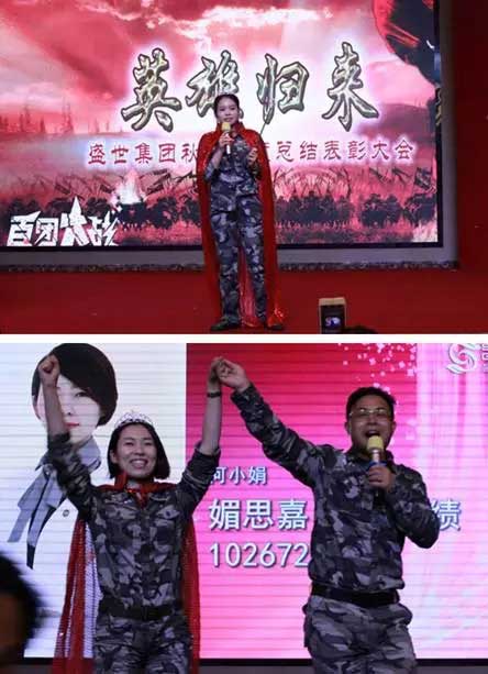 英雄歸來,榮譽歸來,伴隨著倒計時的響起,盛世家族的大門打開了,盛世領導像家人一樣敞開了懷抱,逐一擁抱我們的英雄,歡迎英雄歸來。整個現場因為英雄的歸來,全體成員起立報以最熱烈的鼓掌,全部歡快地跳躍起來,全程失控般沸騰,這就是永遠活力,永遠精彩的盛世。